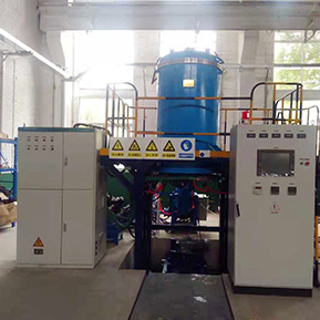 設(shè)備主要包括電爐爐體、傾轉(zhuǎn)式澆注裝置、 次快速冷卻銅輥裝置、第二次快速冷卻傳送裝置、可控拔塞機構(gòu)、第三次快速冷卻收料裝置、真空系統(tǒng)、中頻電源、感應(yīng)器、保溫包、加熱同軸電極、熔煉轉(zhuǎn)動電極、母線、工作平臺及水冷等組成。